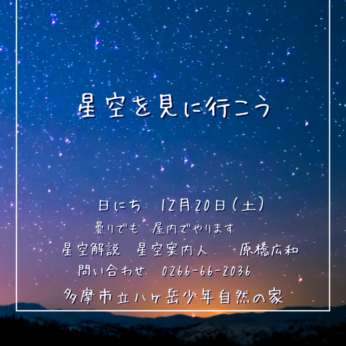 申込時に「星空を見にいこう参加希望」とお伝えください。